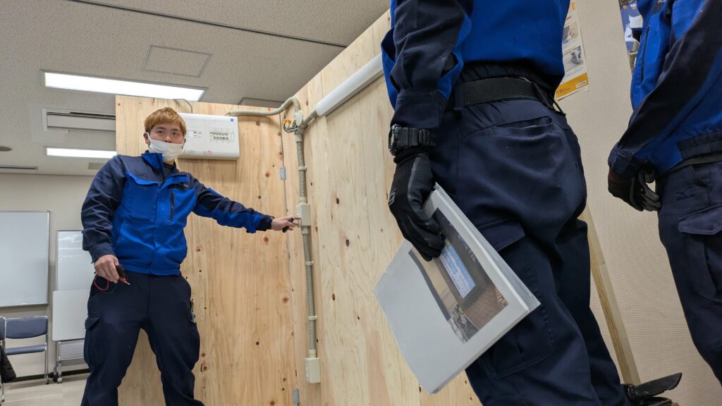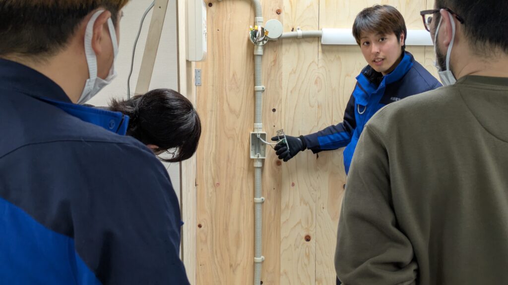 「電気工事士の資格は持っているのですが、簡単な作業しかしたことがなく、図面を見て最初から施工するような『本格的な工事』は未経験だったので、今回はそれを体験したくて参加しました。 実際に作業してみて改めて『電気の怖さ』を感じましたが、だからこそ作業前の検電など、安全確認を徹底することの重要性を肌で学ぶことができました。非常に良い経験でした。ありがとうございます」