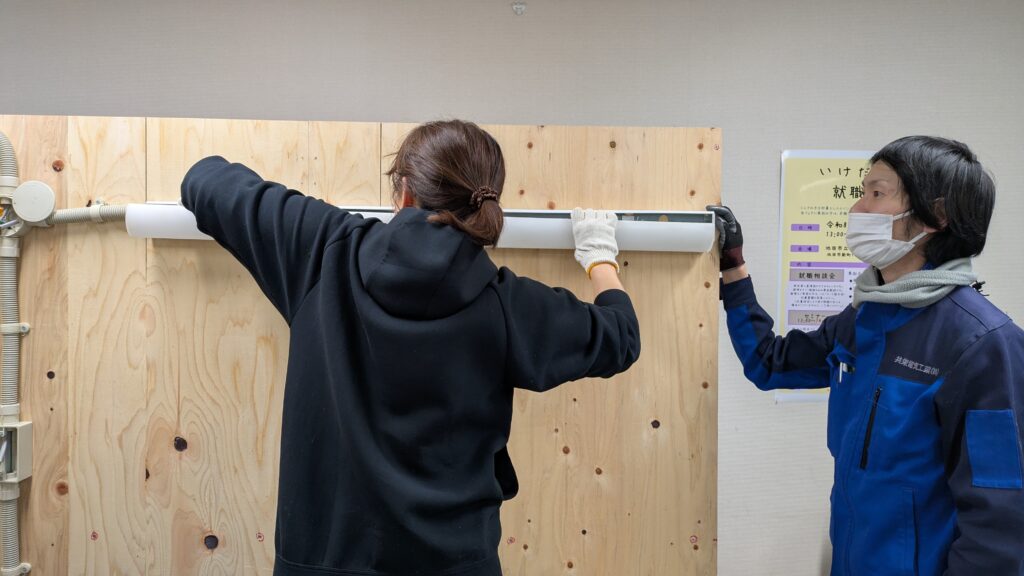 会社と業界の全体像を知っていただいた後は、いよいよ職人が教える実技体験です!